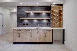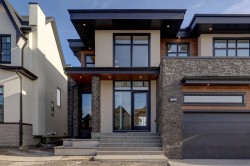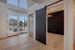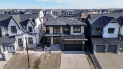 Welcome to this stunning home located in the highly sought-after community of Coopers Crossing! Boasting exceptional curb appeal and backing onto beautiful green space, this home is ideally situated close to schools with convenient access to major roads.The main floor offers 10’ ceiling, engineered hardwood flooring, a spacious and inviting entryway, an office with glass features and custom finishes, and a large living room featuring a cozy gas fireplace and built-in shelving. The elegant dining area opens onto a generous sized deck with bbq gas line, perfect for entertaining. The gourmet kitchen is a chefs dream, complete with a waterfall island, built-in stainless steel appliances, quartz countertops, and a walk-through pantry. You will also find a large mudroom and a convenient powder room on this level.Upstairs, you are welcomed by a cozy loft area with custom built book shelf and a thoughtfully designed laundry room with a sink and lots of storage space. The luxurious primary suite includes a spacious walk-in closet and a spa-inspired ensuite with a custom walk-in steam shower, in floor heating, dual vanities and a freestanding tub. There are three additional generously sized bedrooms, each with custom-built closet shelving. One bedroom features its own ensuite, while a well-appointed main bathroom serves the other two.The fully finished basement adds even more living space, offering an additional bedroom, full bathroom, and a large recreation room complete with a wet bar—perfect for hosting guests.Throughout the home, you will find elegant lighting, custom woodwork and large windows that flood the space with natural light. The oversized triple tandem garage is insulated, finished to paint grade with texture ceiling and features high ceilings designed to accommodate a car lift, offering plenty of room for vehicles and storage.This exceptional home is truly a must-see!