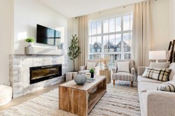 Welcome to the Jasper by Genesis Builders, a beautifully designed townhome with no condo fees in the heart of Bayview. Offering 1,354 sq. ft. of above-grade living space, this home combines modern finishes, functional design, and unique features like a rooftop patio and a 20' x 22' attached double garage. The basement includes 9' ceilings and is ready for your ideas. The main floor offers open-concept living with an inviting layout that’s both bright and practical. The kitchen is finished with stone countertops, stainless steel appliances, full-height cabinetry, and a large island with seating, flowing into the dining area and living room. A feature fireplace adds warmth and style, making the space perfect for both entertaining and everyday living. A half bath, storage, and direct garage access complete this level. Upstairs, the primary suite includes a walk-in closet and private ensuite with a large tiled shower. Two additional bedrooms, a 4-piece bath, and a conveniently located laundry space complete the upper floor. The rooftop patio above the garage provides a private outdoor retreat for relaxing or entertaining. Bayview is one of Airdrie’s most exciting communities, with pathways, playgrounds, an outdoor amphitheatre, basketball courts, and tennis courts that convert to a skating rink in the winter. With easy access to schools, parks, and the canals, Bayview offers both lifestyle and convenience. *Photos are representative colors and finishes may vary. Area size was calculated by applying the RMS to the blueprints provided by the builder. Similar Jasper model is currently available at 2150 Bayview Drive. Taxes to be assessed.