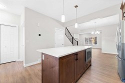 Move-In Ready | 2024 Build | East/West Facing | 1,580 SqFt | 3-Bedrooms | 2.5-Bathrooms | Incredible Living Space | Quartz Countertops | Stainless Steel Appliances | Beautiful Finishes | Open to Below Ceilings | Pot Lighting | Open Floor Plan | Electric Fireplace | Large Windows | Upper Level Laundry | Side Entry to Basement | Alley Access. Welcome to your stunning 2-storey home in Bayside with 3 bedrooms, 2.5 bathrooms and an expansive living space. The main and upper levels boast 1580 SqFt with an additional 701 SqFt in the unfinished basement. Open the front door to a foyer with views into the open concept main level. The front living room is framed with large windows beaming with morning sunlight through the East facing windows. The living room is paired with an electric fireplace adding both style and comfort to this space. The open floor plan compliments a smooth transition from living to dining. The kitchen is outfitted with ample cabinet storage, a bold and stylish black herringbone accent backsplash, quartz countertops, stainless steel appliances and a centre island with barstool seating. The kitchen is also includes a gas line to the stove! The kitchen has a pantry for dry goods storage too! Off the kitchen is a rear coat closet and back door that leads to the backyard and rear parking pad. The main level is complete with a 2pc bath. Upstairs holds 3 bedrooms and laundry. The primary bedroom is grand with a walk-in closet and a private 4pc ensuite bath with a walk-in shower and a double vanity. Bedrooms 2 & 3 are both a great size with closet storage and share the main 4pc bathroom with a tub/shower combo. The laundry is located on this upper level in a deep closet to not take away from any of your living space. Downstairs, the basement has a separate side entry and has rough-in plumbing! This space can be easily transformed to fit your family's needs. Outside is a great sized backyard with space for a deck and a rear detached double garage! Hurry and book your showing at this incredible family home today!