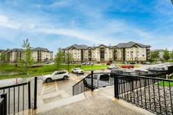 Unique chance! Experience the best of Downtown Airdrie living in this exceptional unit! Boasting 1,055 square feet of meticulously renovated space, this 2nd-floor condo offers an incredible opportunity. From the moment you step inside, you'll be captivated by the abundant natural light streaming through the expansive windows, creating an airy, open feel throughout the day. As one of the largest floor-plans in the entire development, this unit provides generous living and dining areas, seamlessly flowing into a stylish, functional kitchen. Home chefs will appreciate the upgraded wood cabinetry, sleek stainless appliances, and a convenient breakfast bar – perfect for entertaining or casual meals. This thoughtfully designed condo features two spacious bedrooms, including a primary suite with a walk-through closet and a private 3-piece ensuite. A second full 4-piece bathroom and a versatile den (ideal for a home office, gym, or quiet retreat) offer ultimate flexibility.The large living room with a gas fireplace leads to the spacious private balcony with gas barbecue hook ups and a fantastic view of the park! Enjoy the comfort of in-suite laundry and storage! The balcony includes a gas hook up for your BBQ and no building behind you for privacy. Adding to the convenience are two parking stalls: one titled, underground and heated, and another surface stall directly in front of the building. Located in a highly sought-after, well-managed complex with ample visitor parking, you'll enjoy quick access to walking paths, schools, shops, public transit, and major routes. This bright, inviting space is truly a must-see! Schedule your private showing today!