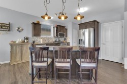 Step into this original-owner 2-storey residence situated on a generous 4,886 sq ft pie shaped lot backing onto a park in the desirable “Rolling Hills” neighbourhood of Blackfalds. The main level features a bright foyer with soaring high ceilings, and an open-concept layout that flows seamlessly from the kitchen into the dining and living areas. Large windows flood the space with natural light, while the modern colour palette lends a fresh, clean feel. The well appointed kitchen boasts cabinetry, island workspace, pantry, and direct access to the yard, perfect for entertaining or family living. A convenient powder room rounds out the main floor. Upstairs, you’ll find three spacious bedrooms and two full bathrooms arranged in a smart, split-floor fashion that creates separation between the master suite and the additional sleeping areas. The master suite includes a walk-in closet and its own ensuite. The unfinished full basement presents excellent potential for future development design your ideal recreation room, extra bedrooms or home office. The attached two-car heated garage with 12 foot ceilings adds year-round comfort, and central air ensures cool summers. Outside find a private backyard that backs onto a park and a deck with gas bbq. Located close to schools, the commuinty skate park, biking track and the acclaimed Abbey Center.