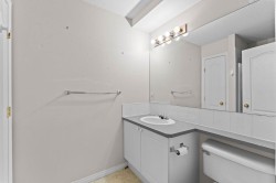 Discover exceptional value in this spacious 2-bedroom, 2-bathroom ground-floor 18+ condo in the well-established community of Glamorgan. Offering nearly 980 square feet of living space, this unit features a functional layout with a bright and open living room, a cozy gas fireplace, and access to a private balcony—perfect for morning coffee or quiet evenings. The kitchen is equipped with classic white cabinetry, white appliances, and a convenient pantry for added storage. The generous primary bedroom includes a walk-through closet and a 4-piece ensuite, while a second bedroom and full bathroom offer great flexibility for guests, roommates, or a home office. Additional highlights include a private laundry room with extra storage space and a titled parking stall for your convenience. Don't miss your chance to see this one today. You won't be disappointed.