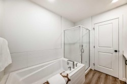 STARLING HAS BEEN QUIETLY BUILDING A REPUTATION—for calm streets, thoughtful design, and a nature-forward rhythm that buyers notice the moment they arrive. This home leans right into that energy. The WIDE FRONT PORCH sets a grounded first impression, and inside, natural light moves through the main floor with the kind of ease that makes the whole space feel instantly welcoming. Warm LVP, 9' CEILINGS, and a clean, modern palette work together to create that subtle “this feels right” moment you feel as soon as you walk in.And then there’s the FLEX ROOM.Framed with FRENCH DOORS and positioned with just enough separation from the main living spaces, it’s the RARE MAIN-FLOOR ROOM that feels truly intentional—not a leftover corner repurposed as an “office,” but a space with presence. It becomes whatever your life needs most: a polished workspace, a creative zone, a reading retreat, or simply a quiet room with a door when the rest of the house is in motion.The kitchen continues that thoughtful rhythm: QUARTZ COUNTERS, 42" UPPERS that keep the lines crisp, a CHIMNEY HOOD FAN that anchors the design, and storage placed exactly where real routines land. The SEPARATE SIDE ENTRY adds smart flexibility—practical now, and perfectly positioned for whatever plans come later.Upstairs, the layout stays calm and well-proportioned. Bedrooms sit where they should, offering both connection and privacy, and the upper laundry room keeps daily life where it actually happens. The primary ensuite is the unexpected luxury in this footprint: A SOAKER TUB, A TILE-AND-GLASS SHOWER, AND A DUAL-SINK VANITY—a trio rarely found together in homes this size, and one that quietly transforms both mornings and evenings.Outside, the REVERSE-PIE LOT is a meaningful advantage. It gives you a LARGER FRONT YARD AND A GENEROUS SIDE YARD, creating more breathing room, more natural light, and a sense of separation that’s uncommon in new communities. The off-street parking pad off the paved lane provides easy parking right at home—no street shuffle required. Add the REAR DECK with its BBQ gas line, front sod already in place, and 200-amp electrical service, and the long-term livability becomes clear.Set within steps of Starling’s PATHWAY NETWORK and nature-first streetscape, this is a home that blends light, flow, and flexibility with quiet confidence.BOOK A SHOWING and come see how naturally it fits the way you live. • PLEASE NOTE: Kitchen appliances are included, and will be installed prior to possession.