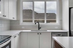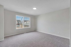 Welcome to 225 Heirloom Way SE, an exciting opportunity to purchase a brand new Heirloom Street townhome by Baywest Homes in the highly sought-after community of Rangeview. Presenting The Viola A model, this home offers a charming farmhouse-inspired exterior and an elegant interior featuring finishes handpicked by a professional interior designer. The layout is designed with the modern family in mind, offering an open concept on the main floor with 9-foot ceilings throughout. The main floor is highlighted by beautiful hardwood-inspired LVP floors, a gallery-style kitchen with quartz countertops, a sleek stainless steel appliance package, abundant cabinetry and counter space, and a spacious island with an eating bar. The living room, situated at the front of the home, is bright and airy with large, sunny windows. Just off the dining room, the mudroom and backdoor lead out to a private backyard and an oversized single detached garage. A half bath completes the main level. Upstairs, you’ll find 3 bedrooms, 2 bathrooms, and convenient laundry. The generously-sized primary bedroom includes its own 3-piece ensuite with a large shower. The remaining two bedrooms are located at the back of the home and share a full bathroom. The home also features an undeveloped basement, offering ample space for future development, including additional bedrooms, a bathroom, family room, or storage. This townhome is an end unit, offering the added benefit of a side door, and boasts a private South-facing backyard. It is ideally located across from the new community greenhouse and fronts onto the future community gardens. You won’t want to miss this one, as it’s one of the final opportunities to own a property directly across from the upcoming greenhouse. Additional inclusions are the front landscaping, designer-curated palette with upgraded finishes at no extra cost. The builder also includes one side of fencing for your private backyard. Rangeview is Calgary’s first Garden-to-Table Community, thoughtfully designed to inspire food-centered living. With walkable streets, open spaces, and vibrant gardens, it’s the perfect environment for neighbors to gather and connect. Residents can enjoy walking, jogging, or cycling through the community’s network of pathways and linear parks. Future plans include over 23 acres of reconstructed wetlands and ponds, creative playgrounds, outdoor classrooms, interpretive areas, and more. The food-producing gardens, orchards, and greenhouse will bring residents together to celebrate food and nature. The heart of Rangeview will be the Market Square, a lively space for community events, food markets, and celebrations, complete with open lawns and playgrounds. Plans for an Urban Village with restaurants, boutiques, and services will enhance the sense of community. **Photos are of the Showhome and may not exactly represent the finished product.