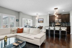 In the heart of Walden, one of Calgary’s most loved family communities, this beautifully maintained Centrix built home offers space, comfort, and polished style. From the moment you step inside, the gleaming hardwood floors and rich brown cabinetry set a warm, comforting tone, while every room reflects true pride of ownership. The main floor unfolds with effortless flow: a bright open-concept living space where the kitchen, dining room, and living room connect seamlessly. Pot lights and pendant lights illuminate the kitchen’s stainless steel appliances and large island, while the dining area opens onto a large rear deck, creating a natural extension for summer evenings and effortless entertaining. Tucked at the front, a versatile flex room adapts to your lifestyle - home office, playroom, or creative studio. And at the back of the home, the living room draws you in with its gas fireplace making the entire space feel grounded and intimate. Upstairs, the home’s thoughtful design really shines. A generous bonus room anchors the level, giving families room to spread out and recharge. The primary suite feels like a true retreat with large walk-in closet, abundant natural light, and a well-appointed 5-pc ensuite w/ soaker tub and walk-in shower. Two additional bedrooms, a 4 pc bathroom, and upper-floor laundry featuring a nearly new washer and dryer, complete this level. The developed basement expands your living experience with a spacious rec room, a fourth bedroom with a walk-in closet, a Marriott Hotel inspired 3 pc bathroom, and excellent storage ideal for multigenerational living, teens, guests, or simply stretching into that extra breathing room. Then there's the backyard - your private sanctuary featuring a custom putting green that turns downtime into fun time. Exterior soffit Christmas lighting ensures the home looks stunning year-round, Central AC keeps you cool in the summer and shutter-style blinds inside add a layer of elevated finishing that completes the home’s polished feel. Smart home compatible lights, thermostat, garage door, etc - all can be controlled by a Google Console. Extra long driveway can fit 4 compact cars/SUVs. Set on a quiet, family-friendly street in vibrant Walden with parks, paths, restaurants, and amenities all just moments away. Enjoy quick and convenient access to major routes, including Stoney Trail and Macleod Trail, making commuting and exploring the city a breeze. This home won’t last long. Come experience the lifestyle waiting for you here. Book your showing today.