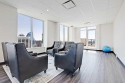 *VISIT MULTIMEDIA LINK FOR FULL DETAILS, INCLUDING IMMERSIVE 3D TOUR & FLOORPLANS!* This bright NORTH-facing 1-bed + den unit with stunning PANORAMIC RIVER VIEWS from the 24th floor in the upscale Vogue building is a must-see! There are only 4 upgraded floors in the Vogue building, which were specially customized for Bedouin Suites, and this is one of them! EXCLUSIVE BEDOUIN FEATURES include upgraded hallways and common areas, as well as INCREDIBLE UNIT UPGRADES like custom kitchen islands with bar seating, upgraded appliances & lighting including dimmers throughout, custom bedroom panelling including built-in side tables with convenience plugs, upgraded bathrooms with tile wainscoting and glass shower doors, built-in walnut entertainment units, a Smart Sensor energy management system for the eco-minded buyer and MORE! This customized ‘VARSITY’ floorplan also had a kitchen wall removed for improved flow and natural light, and WOW, does it look good! This condo presents modern living at its finest, including an open-concept layout filled with natural light through ample floor-to-ceiling windows, complemented by luxury vinyl plank flooring adorning the main living spaces. The modern kitchen boasts wood-grain cabinets with modern hardware and under-cabinet lighting, a specially designed central island with quartz counters, a tile backsplash, a dual-basin undermount sink, and upgraded stainless steel appliances, including a chimney-style hood fan. The open main living area features a built-in walnut entertainment unit with a wall-mount TV included and access to a large balcony with a gas line for a BBQ and panoramic views of the Bow River. The bedroom features custom wall panelling with built-in side tables, wall sconce lighting and a convenient receptacle with a USB port, plus an included wall-mounted TV. A large walkthrough closet with built-in organizers and a stacked laundry leads to the 4-pc bathroom complete with occupancy-sensored lights, quartz countertops, tile wainscoting, an undermount sink with modern faucet, tile backsplash, modern vanity with storage, tile floors, and a large tub/shower combo with full height tile and an upgraded glass door. Additionally, a sizable den makes the perfect home office or flexible space. VOGUE is a high-end building with a ton of amenities, including UNDERGROUND HEATED PARKING, central A/C, an elegant formal lobby, full-time concierge, gym, billiards, a large party room with a kitchen, a yoga studio, a Sky Lounge on the 36th floor, and multiple rooftop terraces. Surrounded by parks, transit, the LRT, shopping & more, & within walking distance to the downtown core & all Kensington shops & services – this location offers the best urban lifestyle in the Downtown Commercial Core.
