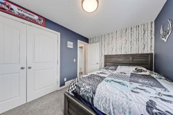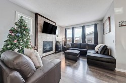 Charm meets convenience in this well-maintained two-storey detached home in Mahogany, offering nearly 1,700 sq. ft above-grade space. In this award-winning 4-Season lake community, residents enjoy exclusive access to 63 acres of water, private beaches, a kids' splash park, 22km of pathway & 74 acres of restored wetlands. Inside, a bright foyer with a convenient front closet and very discreet powder room leads into the open-concept main floor. This sought-after central kitchen design offers stainless steel appliances, a central island with bar seating, granite countertops, a tiled backsplash, ample cabinetry, and generous prep space. A cozy, carpeted den, just off the dining area, complete with large windows and built-in shelving, creates a versatile space for a home office, with enough room for both partners to work from home or use it as a playroom, study nook, or reading spot. The living area is filled with natural light thanks to the oversized windows and features a gas fireplace framed with tile and custom wood detailing. The large mud room is perfect for kids loading and unloading from the oversize deck and garage. This home also includes central A/C for year-round comfort. Upstairs, the primary suite offers a peaceful retreat with a large walk-in closet and a spa-inspired 5-piece ensuite featuring dual sinks with granite countertops, a soaker tub, and a tiled walk-in shower. Two additional bedrooms, a 4-piece bathroom, and a dedicated laundry room with storage space for cleaning supplies complete the upper level. The fully custom-designed and developed basement adds even more living space, including a spacious rec room with a cozy fireplace, an extended wet bar with quartz counters and a brand-new full-size fridge, a comfortable 4th bedroom, and a modern 3-piece bathroom. This $40,000 development also included ceiling sound bars for enhanced sound mitigation. The basement is fully insulated and features abundant storage, including large storage rooms ideal for seasonal items, gear, and household extras. Outside, enjoy an amazing backyard on the street's largest lot, with no neighbours behind you, featuring a large deck, a storage shed, plenty of space to relax, play, or garden, and a nearly 550 sq. ft. double detached garage offering insulated, heated parking and additional storage. The garage is oversized with a valued section perfect for bikes, tools, or game meat. The paved back lane keeps vehicles and garage floors cleaner year-round. The exterior also features Gemstone lights for customizable seasonal lighting. Set in Mahogany, one of Calgary’s most desirable lake communities, this home is close to parks, pathways, shops, dining, and year-round recreation. Own a warm, welcoming home in a vibrant neighbourhood.