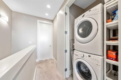 #308 1611 – 28th Ave SW Gorgeous urban townhome in the vibrant inner-city community of Marda Loop, South Calgary! Located in the boutique building of the coveted Alex Courtyard Lofts, this is your inner-city oasis! Sleek modern design, open spacious layout with the kitchen being open to the dining and living room area. Stunning kitchen with quartz countertops, stainless steel appliances and large island. Light and bright, with floor to ceiling windows. Hardwood floors throughout main floor. The living room features a contemporary fireplace with patio doors out to your own South facing, private patio yard area giving you added outdoor living space. Two bedroom, two and a half bath townhome with each bedroom having its own ensuite bathroom. Titled underground secure Parking. Titled Storage locker #48. Pet friendly complex (pets allowed with board approval). Live in the vibrant community of Marda Loop with all its little shops, fantastic restaurants, pubs, grocery stores and more. Walk to fantastic amenities within the South Calgary, outdoor swimming pool, public library, tennis courts, skating rink, parks, playgrounds, walking paths and beautiful natural park and off leash area along the Elbow River for your furry family member. Close to all the fantastic stores, restaurants and pubs on 17th Ave. 10 minute drive to downtown. Urban living at its finest! View the 3D Tour (Purple House Symbol). Welcome home!