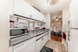 Enjoy effortless connectivity with quick access to Downtown, Deerfoot Trail, and Stoney Trail — a truly prime location. Start Building Equity in Dover Pointe! Step confidently into homeownership with this bright and beautifully refreshed two-bedroom, one-bath condo in the heart of Dover. Perched on the third floor, this spacious unit welcomes you with sunny southwest views from your private balcony — the perfect spot for your morning coffee or after-work unwind. Inside, you’ll find a functional galley kitchen featuring NEW tiles, NEW ceiling fan, NEW hood fan, and a newer stove — blending practicality with a fresh modern touch. The open dining area flows easily into a large, light-filled living room, ideal for hosting friends or relaxing solo. Throughout the home, stylish laminate flooring, crown mouldings, and NEW carpet in both bedrooms add comfort and polish. Each bedroom offers excellent closet space, while in-suite laundry keeps everyday life simple and convenient. This well-maintained, pet-friendly complex includes heat and water in your condo fees, plus one assigned outdoor parking stall. Your furry friend will love the Southview Off-Leash Park just a short 13-minute walk away, and your inner foodie will appreciate being steps from community restaurants — with Deerfoot Meadows (IKEA, Costco, Walmart & more) just minutes away. Commuting is effortless, with quick access to downtown by car or transit. Why rent when you can own your own place — comfort, convenience, and value all in one!