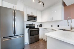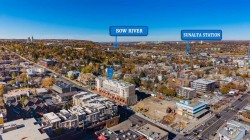 Welcome to a rare two-level penthouse in the heart of Sunalta. With one bedroom, two full bathrooms, a versatile den/loft, and over 900 square feet of living space, this unit blends downtown energy with real privacy. Floor-to-ceiling windows and 17-foot vaulted ceilings fill the space with natural light. Two private outdoor spaces, including a huge rooftop patio, offer incredible views and room to breathe.Inside, the kitchen has been completely redesigned with quartz countertops, custom cabinetry, and vinyl flooring. It’s stylish, modern, and fully open to the dining and living areas. The main floor also features a spacious bedroom with balcony access, a four-piece bathroom, and a cozy gas fireplace.Upstairs, the skylit loft adds flexible square footage for a primary suite, studio, or second lounge. It includes a second full bathroom and direct access to the private rooftop patio. It’s perfect for entertaining or unwinding above the city.Additional features include in-suite laundry, titled underground parking, f, and a strong, pet-friendly building. You are just steps from cafés, breweries, parks, bike paths, and transit. This unit is a true inner-city retreat with character, volume, and upgrades that stand out.Move-in ready. Turn-key. One of a kind.