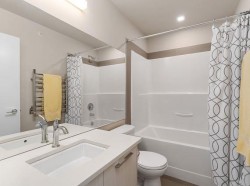 ***NEW PRICE***Welcome to this stunning 2-bedroom, 2-bathroom top floor condo offering style, comfort and convenience. Rarely available, this home includes three parking stalls-one underground and two outdoor. Step inside to an open and modern layout featuring a designer kitchen with quartz countertops, sleek cabinetry with LED tape lights, and stainless steel appliances. The soaring high ceilings with custom pot lighting create an elegant ambience while the luxury vinyl plank flooring adds a touch of sophistication. Enjoy the breathtaking views of Sherwood Square Lake from your private balcony (BBQ gas-line) -the perfect spot to relax and unwind. Both bedrooms are generously sized . with the primary suite offering a walkthrough closet and a full en-suite bathroom (standing shower) for added privacy. This beautiful condo combines modern finishes with everyday functionality, making it ideal for homeowners and investors alike. Great Location, Great Unit , Great Opportunity!