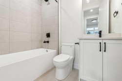 Modern Luxury Meets Elevated Living in Spruce Cliff. Discover this exceptional new build in the highly sought-after community of Spruce Cliff, where timeless design and modern elegance converge. This stunning 4-bedroom, 5-bathroom home showcases superior craftsmanship, premium finishes, and thoughtful functionality throughout. An impressive main level welcomes you with white oak wide-plank flooring, abundant natural light, and sophisticated designer lighting. The open concept living area features a sleek gas fireplace set within a striking tile wall, creating a perfect blend of warmth and contemporary style. The chef-inspired kitchen boasts high-end appliances, a massive center island, full-height custom cabinetry, and refined detailing ideal for both entertaining and everyday living.Upstairs, the primary suite is a serene retreat complete with a spa-like 6-piece ensuite featuring a freestanding soaker tub, multi-jet rain shower, dual vanities, and heated floors. The custom walk-in closet offers floor-to-ceiling built-ins, providing both beauty and function. Two additional bedrooms each feature walk-in closets, with one offering its own private ensuite. A convenient upper-level laundry room with a sink adds to the home’s thoughtful design. The fully developed lower level includes a legal one-bedroom suite with a separate entrance — ideal for extended family, guests, or potential rental income. The suite is complete with a full kitchen, 4-piece bathroom, laundry area, and a spacious living room. Outdoors, enjoy a west-facing backyard with a deck and green space, perfect for relaxing or entertaining, plus a double detached garage with back-lane access. Situated in the heart of Spruce Cliff, this location offers the best of both worlds — urban convenience and natural beauty. Minutes from shopping, restaurants, golf, and the Douglas Fir Trail system, this home is the perfect blend of modern luxury and everyday comfort.