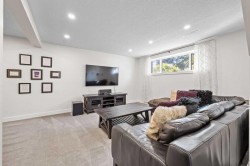 Welcome to this STUNNING, fully renovated family home in the heart of Canyon Meadows!Quietly tucked away on a peaceful street and just steps from schools, parks, and outdoor rinks, this beautifully updated 4-bedroom, 2-bath bi-level offers nearly 2,200 sq. ft. of stylish, functional living space designed for modern family living.From the moment you arrive, you’ll notice the incredible curb appeal — the sleek acrylic stucco exterior, updated roof, soffits, fascia, eaves, and fresh landscaping give this home a polished, contemporary look. Step inside to discover a bright, open-concept layout filled with natural light, showcasing a complete transformation where every detail has been thoughtfully updated — including windows, doors, LED pot lighting, high-efficiency furnace, hot water tank, electrical, and new A/C for year-round comfort.The heart of the home is the custom designer kitchen, featuring a large quartz island, stainless steel appliances, high-gloss cabinetry with soft-close doors, and beautiful custom tile finishes — perfect for entertaining or family gatherings. The seamless flow into the spacious living and dining areas creates an inviting atmosphere ideal for both everyday living and special occasions.Downstairs, the fully developed lower level offers even more versatile living space — perfect for a family room, games area, or guest retreat — along with two additional bedrooms and a full bathroom.With all the major updates complete and every space finished to perfection, this home is truly move-in ready. Located in one of Calgary’s most desirable communities, you’ll love the perfect blend of comfort, style, and convenience.Don’t miss your opportunity to call Canyon Meadows home — book your private showing today!