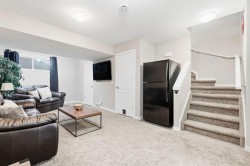 All-New Price! Plus — now enjoy a fully paved alleyway for cleaner access, easier parking, and an elevated overall experience!Step inside this beautifully laid-out home and immediately feel the sense of space and flow. The main floor welcomes you from the front porch into a bright, inviting great room — perfect for relaxing with family or hosting gatherings with friends. Overlooking the great room, the kitchen and dining area feature a large island with an eating bar, ideal for casual meals, catching up with the kids, or entertaining guests. The kitchen also offers dual access to both the side and back yards for added functionality and convenience.Upstairs, a grand staircase leads to the private upper level with three spacious bedrooms. The primary suite includes an impressive walk-in closet and full ensuite — the perfect retreat after a long day. Two additional bedrooms and another full bathroom keep the whole family close and comfortable.Downstairs, the fully finished basement expands the home’s versatility with a large bedroom, a three-piece bathroom, and an open entertainment area — ideal for guests, teens, hobbies, or extended family.Outside, enjoy a private side entrance and an oversized double garage designed for convenience. Upgrades include an 8-foot door, windows in the door, a Wi-Fi-enabled opener with remote capability, and a 240V plug ready for your electric vehicle.The location is unbeatable — just minutes from everything you need. You’re a 2-minute walk to grocery stores, a 1-minute walk to the school, a 2-minute drive to the lake and dog park, and steps from scenic ponds and wetlands.And now, with the alleyway freshly paved, you’ll benefit from cleaner access, smoother driving, and enhanced overall appeal — a testament to the pride of ownership and strong sense of community in the neighbourhood.Welcome home to Auburn Bay living — modern, warm, and ready for your next chapter.