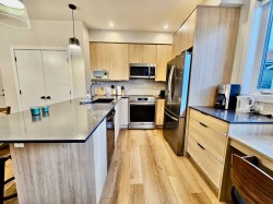 Fully Furnished, turnkey opportunity within Three Sisters Mountain Village, just under an hour from Calgary. This beautiful first-floor 2-bedroom, 2-bath unit features modern kitchens with stainless steel appliances and stone countertops, along with an oversized deck perfect for enjoying breathtaking panoramic mountain views. The primary bedroom includes a private 4-piece ensuite, while the second bedroom offers scenic views and a convenient office nook. Additional highlights include a "car-and-a-half" garage with ample storage and close proximity to the future Gateway Business District. Still covered under the Alberta New Home Warranty Program, this unit combines sustainable luxury with peace of mind. Whether for personal enjoyment or as an investment in Canmore’s thriving real estate market, this home is priced to sell fast—don’t miss your chance to embrace the mountain lifestyle today. **The unit comes with 55' TV, Sectional, Dining Table, 2 X Beds with side tables and all Kitchen appliances and small ware**