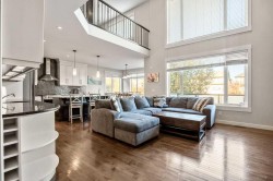 **OPEN HOUSE SATURDAY NOV 1 from 12-2PM** Tucked in one of the most sought-after locations in Chestermere, this stunning two-storey walkout backs directly onto the tranquil Rainbow Falls green space and creek-side pathway. Step outside your back gate to enjoy peaceful walks along the water, surrounded by mature trees and lush landscaping — a true outdoor retreat right at home. Inside, this fully finished residence impresses with thoughtful updates and high-end finishes throughout. The reimagined Chef’s Kitchen now features brand-new stainless steel appliances, elegant granite countertops, custom maple cabinetry with soft-close drawers and under-cabinet lighting, plus a convenient walk-through pantry connecting to the mudroom. Whether preparing an intimate meal or hosting guests, this kitchen delivers both beauty and functionality. Soaring west-facing windows flood the main floor with natural light, framing picturesque views of the creek and park beyond. The inviting great room centers around a full-height stone fireplace — perfect for cozy evenings with family or friends. Upstairs; flowing new carpet, the spacious primary suite provides a true retreat, complete with a spa-inspired 5-piece ensuite featuring heated marble floors, a jetted marble-wrapped tub, dual vanities, and his-and-hers walk-in closets. The walkout lower level is beautifully designed with versatility in mind — featuring an impressive wet bar, built-in Murphy bed, custom wine room, in-ceiling audio, and a sleek 4-piece bath with heated floors and steam shower. Ideal as a guest suite or entertainment space, it’s fully equipped with separate laundry and security systems. Outdoors, the private fenced yard offers multiple gathering spaces — a large deck for summer dining, a cozy fire pit area, and a concrete patio overlooking the natural green space and gently flowing creek. This home truly combines luxury living with the serenity of nature — an exceptional balance of indoor comfort and outdoor beauty.