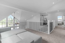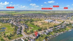 INSTANT EQUITY OF OVER 300K PLUS QUICK POSSESSION HOME !!! A CUSTOM DESIGNED LAKE FRONT MARVEL by SuiGeneris Homes! COMPLETELY RENOVATED DOWN TO THE STUDS WITH ALL NEW ELECTRICAL WIRING, PLUMBING, WINDOWS, SIDING, HUGE MAIN FLOOR DECK,MASTER SUITE PRIVATE LAKE FRONT DECK, Epoxy finish on garage floor. Oversized 2 car garage with epoxy floors, NEW FLOORING, NEW GARAGE DOOR, NEW HVAC, ALL NEW ROOFING, WINDOWS, DOORS, SPRAY FOAM INSULATION THROUGHOUT THE HOUSE AND MORE! COMPLETED WITH A NEW FLOOR PLAN AND ADDITION TO THE HOUSE. Sitting on a HUGE LOT THAT IS RIGHT ON THE LAKE with over 4,200 sq ft of living space. This well planned floor plan offers 5 Beds, 1 flex area, 5.5 baths & an attached OVERSIZED 2 car Garage. 3 ENSUITE BEDROOMS!!! ONLY 10 MINUTES TO/FROM CALGARY. The professionally designed interior is an elegant balance of light tan hardwood floors with white and grey walls and black finishing. The combination of Large windows and Vaulted ceilings in the living areas and bedrooms give lots of natural light to the living areas. In addition to the lake views, enjoy the views of the golf course from 2 bedrooms and a loft on the upper floor. Other features include Paved, drive through driveway, rich combination of Smooth Acrylic Stucco, stone & batten boards on exterior, Custom Cold Air Return Grills, Built in custom closet systems, ship lap feature walls, 2 fire places on main floor and one in master bedroom, Roughed-in Smart monitoring systems, Hardwood Flush Mount Vents in hardwood areas, open riser stairs, 5” Engineered Hard Wood on main floor, LVP basement floors and mudroom, premium carpet, Custom Shower Base with tile to ceilings in all showers, Premium Delta Plumbing package, 36” lower cabinets. All vanities have upgraded drawer style fronts, 8” Stone back splash, High efficiency Tankless Water Heater, Roughed-in Garburator, roughed-in Central Vacuum, High Efficiency Furnace & Smart Thermostat, BBQ Gas line and roughed in garage heater. The kitchen features include a deluxe Kitchen Aid appliance package with waterline to the fridge. Offering Quick and easy access to highway 16, Downtown Calgary, lots of shopping at the nearby East Hills Mall, restaurants, nearby schools and other conveniences. Drive through drive way with fully completed landscaping. MOVE IN READY HOME. READY FOR QUICK POSSESSION