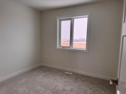 *OPEN HOUSE SAT & SUN 12-3* Welcome to this brand new two storey duplex offering over 1,300 square feet of thoughtfully designed living space with 3 bedrooms and 2.5 bathrooms. Built with modern finishes and a functional layout, this home is well suited for first time buyers, families, or investors seeking long term value.The main floor features 9 foot ceilings and an open concept design filled with natural light. The kitchen is both stylish and practical, featuring quartz countertops in the kitchen and bathrooms, a large central island, and modern cabinetry. Durable vinyl plank flooring runs throughout the main level, while carpet adds comfort to the upper bedrooms.Upstairs, the primary bedroom includes a generous closet and a private 3 piece ensuite. Two additional bedrooms and a full bathroom complete the upper level, offering flexibility for family, guests, or a home office.The home includes a separate side entrance, creating excellent potential for future basement development. The unfinished basement allows buyers to customize the space to suit their needs. Triple pane windows enhance energy efficiency and year round comfort.Outside, the property offers rear lane access and a detached double garage. Located close to parks, playgrounds, walking paths, schools, shopping, and major routes, this home delivers modern design, efficient use of space, and everyday convenience.
