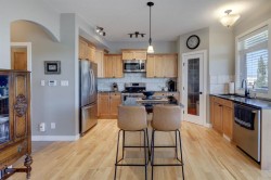Inclusions: electric fireplace, garage shelving, window coverings, garage door opener and remote