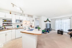 Over 800 sq.ft of living space! This 2-bedroom, 2-bathroom main floor condo in the highly sought-after Eaux Claire community offers the perfect blend of convenience and comfort. A well managed property ideal for both investors and families. Generously sized bedrooms, in-suite laundry, and open concept living. Your west-facing, ground-floor patio provides easy access to the outdoors, perfect for BBQs, enjoying the sun, or unwinding after a busy day. Located just steps from public transit, shopping, and dining. A quick 10-minute walk to the Eaux Claire playground and 15 minutes to Florence Hallock K-9 School, this home is in the heart of a family-friendly, quiet neighbourhood. Plus, with a quick commute to CFB Edmonton, Downtown, and the Anthony Henday, you'll be perfectly connected. This is a must-see opportunity—don't let it slip away! Pets are welcome with board approval.