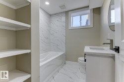 Gorgeous FULLY Renovated Bungalow offers elegance, magnificent living spaces. This home features 1100 SQFT, 4 bed and 2 full baths. Inside the front entry boasts an impressive Open Concept living area, large living room features pot lights and a fireplace The Chef’s Kitchen is outstanding from every angle, showcases tasteful finishes such as Quartz counters, Large Island, custom cabinetry, soft close drawers, Tile, Stainless Steel Appliance’s. Two large bedrooms & Full bathrooms with a gorgeous Master Suite. Basement is fully finished & perfect for entertaining, the Living Room boasts a Fireplace. Two Large bedroom, and a full bathroom. Upgrade's include: High End Finishings, Full Kitchen, Windows, Shingles, Vinyl Plank and Tile Flooring, Bathrooms, Shingles, Plumbing lines, Electrical, Lighting, Furnace, Tank, Doors, Trim. Large Backyard with a privacy fence. The Oversized Single Garage with a Large driveway for ample parking. Located on a quiet street with quick access to amenities, parks, and schools.