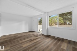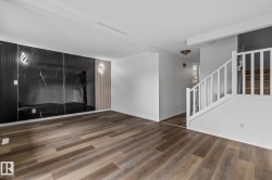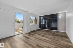 Welcome to this beautifully renovated 4-bedroom, 1.5-bath townhouse, where modern style meets everyday comfort! Step inside and fall in love with the bright, open layout featuring premium vinyl plank flooring flowing throughout the whole house. The spacious kitchen offers abundant cabinetry, generous counter space, and a spacious dining area perfect for family meals and entertaining guests. Just off the kitchen is a convenient 2-piece bathroom. Relax in the inviting living room, showcasing a stunning tile-and-batten accent wall and designer lighting, creating a cozy yet elegant atmosphere. Step through the patio doors to your private, south-facing backyard with a newer vinyl fence, perfect for BBQs, gatherings, and soaking up the sun. Upstairs you have four comfortable bedrooms and a modern 4-piece bath providing space for everyone. The unfinished basement with laundry awaits your personal touch. All of this, completed with one powered assigned parking stall, close to schools, parks, shopping, and transit