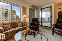 Prestigious Le Marchand Tower with Beautiful Views! Elegance Abounds in this luxurious 1935 sq ft sprawling property. The Grand Entrance brings you to the open concept living space with the den overlooking the sunken living area and dining room flowing into the large kitchen filled with plenty of counter space, cabinets, ample storage plus pantry room. There are 2 generous bedrooms with the primary suite boasting a 5 piece ensuite with walk-in shower, jetted tub and cedar closet. The building offers a large social/entertainment room and guest suite for your out of town guests to Enjoy their private space. Overlooking the river valley and steps to every amenity you wish to entertain, this property is a Treasure at your fingertips.