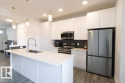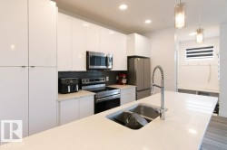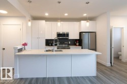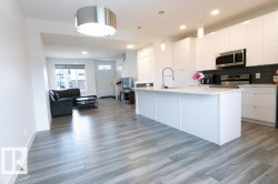 SIMPLY GORGEOUS! This 4 bed, 3.5 bath END UNIT townhome with NO CONDO FEES is located in the vibrant new community of Keswick. Loaded with upgrades including 9’ ceilings, quartz counters & an in-law suite with a SEPARATE SIDE ENTRANCE! The bright main floor features a sunny living room that opens to a sleek white Euro-style kitchen with quality appliances & large island—perfect for entertaining. Upstairs offers 3 spacious bedrooms including a primary with walk-in closet & ensuite, plus a versatile loft & laundry room. The FULLY FINISHED BASEMENT has a 1-bed in-law suite complete with 2nd kitchen, family room & private laundry—ideal for extended family or guests. Just steps to parks, scenic walking trails & major shopping. Immaculate, stylish & move-in ready—this is the one you’ve been waiting for!
