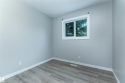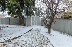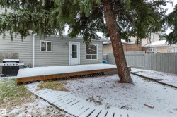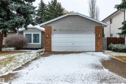 Beautiful 4-bedroom, 2 bathroom, 4-level split in Bearspaw. Step inside to hardwood floors and a light, inviting interior. The living room features a bay window and a wood fireplace, flowing into a hallway leading to the kitchen and upper and lower levels. The dining room off the kitchen has a large window that fills the home with natural light. The kitchen includes stainless steel appliances, an island, and ample cabinet space. Upstairs, you’ll find 3 bedrooms and a 3-piece bathroom with a glass shower and ensuite access from the primary. The lower level features a spacious family room with a wet bar, a large bedroom w/ access to the 4-piece bath, ideal as-is or easily converted to a suite. The basement offers a generous laundry area, utility room, storage, and den. In 2023, this property had a new furnace and AC put in. The backyard includes a deck, a boardwalk to the shed, and mature trees for privacy. With large front and back yards, this home is perfect for families or those seeking suite potential.