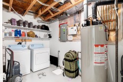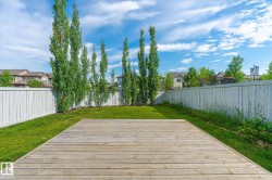 Enormous lot with no neighbours on two sides! This fully finished home welcomes you in with shining hardwood flooring. The bright white kitchen has an island kitchen with eating bar, tons of counter and cabinet space plus a corner pantry. The kitchen overlooks the dining and living area with gas fireplace. Patio doors off the dining area lead to a deck and large fenced yard. Perfect for kids and dogs to roam in! Upstairs there are three good sized bedrooms including a master bedroom with walk in closet. The full bathroom features tile flooring and white cabinetry. The basement has a finished family room. The projector and screen also stay, perfect for your family's movie night! Central A/C is an added bonus, and you have a garage, ample parking in the driveway and lots of on street parking. All of this in popular the Windermere community close to schools, parks, trails gyms and shopping.