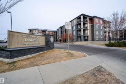 Stylish 2 Bedroom + Den Condo in Creekwood Landing II with Park & Pond Views! Welcome to Chappelle, a vibrant Southwest Edmonton community. This bright and spacious unit features newer vinyl plank flooring, large windows, and a functional open layout. The modern kitchen offers granite countertops, stainless steel appliances, and an island with seating. The versatile den is ideal for a home office or extra storage. Enjoy your south-facing covered balcony with beautiful park and pond views—perfect for relaxing. The primary bedroom includes a walk-through closet and 3-piece ensuite. A second bedroom, full 4-piece bath, and in-suite laundry complete the space. Includes a Titled Heated Underground Parking Stall. Condo fees cover heat and water. A peaceful location and a fantastic community—welcome home!