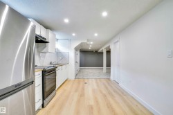 FINISHED BASEMENT With Separate Entrance! 2058 SQFT of combined Living Space on a lot of 4465 SQFT. Fully Renovated house, upstairs and Basement. Basement comes with a Separate Entrance, High ceiling, its own dedicated Laundry, Full Kitchen and 1 Huge Bedroom with 2 Windows and 2 Closets. Upstairs consists of 3 Bedrooms, 1 Full Washroom, Separate Laundry and a Full set of NEW Kitchen Appliances. Duplex is also equipped with a High-Efficiency Furnace, a Tankless Hot Water System, a new Roof, and New Windows, all installed in 2019. The property features a new concrete pad in front, a vast Backyard, and Green space just across the street. Fully fenced large backyard comes with a Deck. Walking distance to the Schools, Church and Mosque. Move-in Ready! Bring the whole family under one roof.
