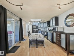 Well-maintained and remodeled single-wide modular home offering 1,272 sq. ft. of living space. Upgraded in 2009 with modern finishes throughout. Features 3 bedrooms, a 5-piece bath, and an open-concept layout with stainless steel appliances, newer furnace, and hot water tank. The 12' x 22' covered deck provides excellent outdoor living space, and the fenced yard is ideal for children and pets. Located in Westview Village, a community offering amenities such as a clubhouse and fitness centre.