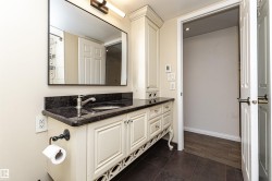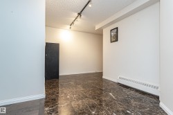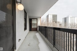 Welcome to Le Marchand Tower one of Edmonton's most prestigious buildings. Conveniently located steps away from the river valley trails, transportation, restaurants, coffee shops, LRT station and with a quick access to the U of A, Brewery District and the Ice District. This fifth floor unit is one-of-a-kind and will not disappoint. It features an open design, 2 bedrooms, hardwood flooring, large living room, white cabinets, granite counters, breakfast bar, huge balcony and a title heated underground parking. The Primary Bedroom is large enough for a king sized bed and has an enormous walk in closet with organizers, plus access to the balcony. In suite laundry. The amenities include a social room with an outdoor area for gatherings, guest suite, and visitor parking. Great price! Fantastic location!
