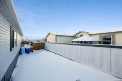 BOUGIE RENOSYou can tell someone loved this home long before you reach the front door. Imagine four bedrooms and two updated bathrooms wrapped in luxury, fuelled by bougie design and powered by coffee.Step inside and the foyer steals the show right away. That custom built bench with cubbies, hooks, closed storage and a warm wood seat sets the tone for the entire place. It feels organized, intentional and high quality. Nothing squeaks, rattles or looks rushed.Head down the hall and the first section of the home opens to three bedrooms and the main bath. The bathroom looks like it came out of a boutique hotel with full height marble look tile, matte black fixtures and a clean vanity with shiplap detailing. Every bedroom has an upgraded closet, painted and wallpapered inside with added lighting. No guessing games when you are hunting for a sweater at seven in the morning.Then the home opens up and gives you that big wide breath of space. The living room, dining area and kitchen stretch from one end to the other with vinyl plank flooring and matching vents tying it all together. It feels fresh and warm at the same time.The kitchen is where you lose all sense of being in a mobile. White cabinetry, soft close everything, new counters & hardware, a full island, new stainless appliances and that glossy taupe tile backsplash that adds depth without shouting for attention. The skylight pours in natural light and the whole space shines. Then you open the pantry and it becomes a whole other experience. Full marble look wall tile, warm wood shelving, custom counters and storage that feels like it was designed by someone who actually cooks. It is bright, polished and wildly practical. And tucked inside is the perfect surprise. Room for a coffee bar ready for your latte era. It is the kind of pantry that makes you want to alphabetize your spices and brag about it.This laundry room has main character vibes. You get stacked modern appliances, sage cabinetry with gold hardware, a feature wall paper, open shelving and a black sink that looks like it planned its outfit a week in advance. Bright, beautiful and way more fun than a chore zone has any right to be.At the opposite end is the private primary suite. The walk in closet has a wallpaper accent, custom shelving and organized hanging space that makes getting ready easy. The ensuite continues the luxury with marble look tile, a deep tub, a custom niche and champagne gold fixtures. The vanity and shiplap wall complete a calm, polished space. The upgrade list is long for 2025: vinyl plank flooring, roof, counters, fixtures, hot water tank, furnace, all appliances, blinds, serviced AC, fresh paint throughout, deck and fence improvements, which opens for RV parking, with two parking stalls The quality of work here is obvious in every photo and even more obvious in person. New definition of pride of ownership.Be sure to check out the 360 tour and detailed floor plans. Are you ready to say yes to the address?