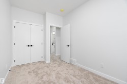 Welcome to this brand new 3-bedroom, 2.5-bathroom home in Leduc’s newest community. The main floor offers luxury vinyl plank flooring, a bright living room with an electric fireplace, and a modern kitchen with quartz countertops, a large island, ample cabinetry, and a spacious pantry. A dining nook and 2 piece bathroom complete this level. Upstairs, you’ll find soaring ceilings and three well-sized bedrooms, including the primary suite with a walk-in closet and an ensuite featuring double sinks and an oversized shower. A 4 piece bathroom and convenient upper-floor laundry complete the second level. Additional features include upgraded lighting, quartz countertops throughout, and a double detached garage. This home is close to schools, walking paths, shopping, and other nearby amenities. Some photos may be virtually staged.