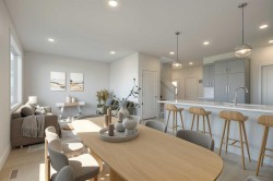 Welcome to the "Lanark II" by Stranville Living, located in the desirable Lethbridge community of Southbrook. This new home is situated merely a few dozen meters from Dr. Robert Plaxton K-5 public elementary school, whose property includes a new playground, soccer pitch, baseball diamond, and a basketball court. Southbrook is conveniently located minutes away from big box shopping, various restaurants, and the VisitLethbridge.com arena and event center. This two storey home is well laid out and boasts a main floor rivaled by few homes of this size. It incudes a beautifully appointed kitchen with Adora Cabinets, fully tiled backsplash, and quartz countertops at the base cabinets and the huge peninsula. Stranville Living's top tier appliance package includes a seamlessly integrated paneled Fisher & Paykel fridge, paneled dishwasher, induction cooktop, built-in hood fan, and a stainless steel wall oven and microwave combo unit. All in all, this is a clean and tight family home backing onto a new elementary school in one of the nicest neighborhoods in south Lethbridge. Tasteful finishes and quality workmanship make this an excellent investment for a buyer looking to start or continue the path to building equity through home ownership. High efficient mechanical equipment, Low E windows, and spray foam in the rim joists help keep your heating ad cooling costs in check. Very cool house on a terrific street in south Lethbridge! Photos contain virtual staging. There's nothing like NEW!