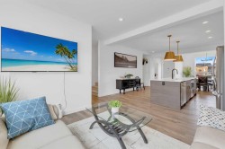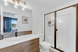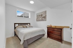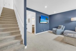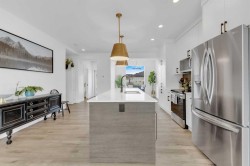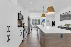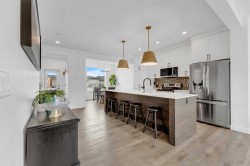 Sleek, Sophisticated, and Move-In Ready! This stunning fully finished two-storey townhome shows like a showhome and offers the perfect combination of modern design, thoughtful upgrades, and low-maintenance living. With quick possession available, this is your chance to start enjoying all the benefits of a newer home without the wait of the build. Located in the desirable community of Evergreen, this stylish home features a bright, open-concept main floor with large energy-efficient windows that fill the space with natural light. The heart of the home is the chef-inspired kitchen, complete with a massive island topped with quartz counters, built-in pantry, and stainless steel appliances — a perfect space for cooking, entertaining, or casual family meals. The dining area comfortably fits a full-sized table, while the spacious living room creates a warm and inviting place to gather.A separate mudroom at the back of the home keeps things organized and includes a convenient half bath, leading out to a sunny back deck with aluminum railing and a fully fenced yard with six-foot vinyl privacy fencing. Off the paved lane, you’ll find two dedicated parking spaces. Upstairs, plush carpeting adds comfort to the three generous bedrooms, including a luxurious primary suite featuring a massive walk-in closet with dedicated shoe storage, and a spa-inspired ensuite with a walk-in shower and seating. A full main bath and upstairs laundry add convenience and functionality, while extra hallway storage makes smart use of every square foot. The fully finished basement adds even more living space, with soaring 9-foot ceilings, large windows, a fourth bedroom, full bathroom, and a family room perfect for movie nights or a home gym. Located in a quiet, family-friendly neighborhood with walking paths, playgrounds, and a scenic bridge, this home is just minutes from shopping, dining, schools, golf courses, and more. With the peace of mind of Alberta New Home Warranty, this is truly a stress-free purchase. This gorgeous home is ready for its next owner to simply move in and enjoy — but at this price and condition, it won’t last long.