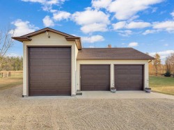 Just 20 minutes from Sylvan Lake and 30 minutes from Red Deer, this stunning 3.18-acre property offers the perfect blend of privacy, craftsmanship, and convenience. The 1,996 sq. ft. main floor showcases elegant maple cabinetry and solid doors, granite countertops, 9’ ceilings, and an inviting open-concept design with abundant natural light. The fully finished 1,996 sq. ft. walkout basement features a spacious family room, games area, and ample storage throughout. Enjoy the comfort of a radiant-heated attached double garage with high ceilings and the practicality of a detached, triple-bay shop — fully insulated, in-floor heated, and built with 5” concrete floors. Two bays measure approximately 24’x32’ with 10’x10’ doors, while the third bay extends 14’x38’ with a 14’-wide, 16’-high door — perfect for RVs or larger equipment. The agricultural-zoned land is thoughtfully set up with a fenced paddock, stock waterer, and shelter, while the entire perimeter is secured with chain-link fencing and an automatic security gate. Multiple decks overlook a beautifully private backyard, offering ideal spaces for entertaining or relaxing. With all appliances replaced in the past five years and direct paved access, this remarkable property truly defines upscale rural living.