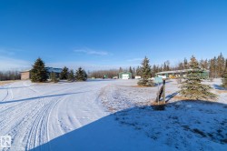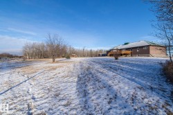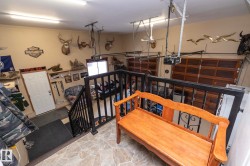 Acreage living at its finest! This versatile 5-bdrm home sits on 28.5 acres & offers nearly 2,200 sq.ft. per level—perfect for multi-gen living, blended families, or anyone needing serious space. The main floor features 3 inviting bdrms, including a gorgeous primary suite w/spa ensuite: sunken soaker tub, separate shower & beautiful tile finishes. The sunken living room shares a 2-sided FP w/the den, which opens onto a huge west-facing deck. The bright kitchen offers panoramic views, loads of prep/storage space & easy access to the dining room. Both levels feature full kitchens & laundry for true independent living. The lower level includes 2 large bdrms, full bath, rec room, games area & storage. Outside is a dream for hobbyists: an oversized dbl garage w/8’ o/h doors PLUS two shops—a 30’x65’ metal shop w/in-floor heat, power, insulation & 20’x16’ o/h door, and a 40’x113’ metal storage building. Space, privacy & endless possibilities—this acreage checks every box!