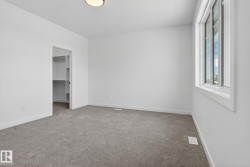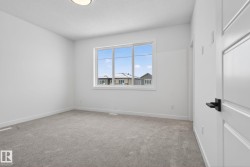 BRAND NEW Townhome with NO CONDO FEES. Open concept floor plan features a living room with electric fireplace complete with an accent wall. Upgraded ceiling height kitchen cabinets with quartz countertops and soft-close drawers. A nook overlooking the backyard and a 2-piece powder room complete the main floor. Upstairs, the master bedroom features a 4-piece ensuite and Walk-In Closet. 2 additional good sized bedrooms, a bathroom and laundry room complete this level. SEPARATE SIDE ENTRANCE to the basement plus a DOUBLE DETACHED GARAGE. Modern Details include MDF shelving throughout, luxury vinyl plank, upgraded backsplash and premium lighting package. This community is conveniently located just 10 minutes away from the City of Edmonton and has direct access to Highway 16A. Close to all amenities.
