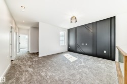 UPGRADED WALKOUT HOME BACKING GREENSPACE/POND IN THE COMMUNITY OF TONEWOOD! This home boasts 2344 sq/ft with 4 bedrooms, 3 full baths, bonus room & 9ft ceilings on all three levels. Main floor offers vinyl plank flooring, bedroom/den, family room with 18ft ceiling, fireplace. Kitchen, with modern high cabinetry, quartz countertops, island, wet bar & walk-in pantry, is made for cooking family meals and entertaining. Spacious dinning area with ample sunlight is perfect for get togethers. The 3 piece bath finishes the main level. Walk up stairs to master bedroom with 5 piece ensuite/spacious walk in closet, 2 bedrooms, full bath, laundry room with sink, computer nook and bonus room. Unfinished walkout basement with separate entrance and roughed in bathroom is waiting for creative ideas. Public transit to Edmonton, & more than 40 km of trails, your dream home home awaits. Includes:DECK/TRIPLE PANE WINDOWS/ WIRELESS SPEAKERS/ GAS HOOKUP ON DECK