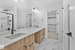 The Baci model welcomes you in with a spacious foyer and mudroom, leading into an open-concept kitchen, nook, and living room with soaring ceilings and a striking open-to-above design. A built-in pantry and central island enhance the kitchens functionality, perfect for everyday living and entertaining. Upstairs features two secondary bedrooms, a laundry closet with sink, and a serene primary suite with double sinks, tiled shower, and a walk-in closet. The home also includes a legal basement suite with one bedroom, a living room, 3 piece bathroom, and full kitchen.