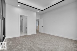 Discover this beautifully crafted home in Erin Ridge, St. Albert, offering over 2,000 sq ft of refined living on two levels. A walk-through pantry leads to a chef’s kitchen with CEILING-HEIGHT two-tone cabinetry, QUARTZ countertops with MATCHING BACKSPLASH, gas cooktop, built-in microwave, and wall oven. The OPEN-TO-BELOW living room boasts a soaring statement wall with a sleek ELECTRIC FIREPLACE framed by FULL-HEIGHT BLACK TILES and elegant spindle railings. The main floor includes a versatile den or 4TH BEDROOM and FULL BATH, while upstairs features a bonus room with feature wall design, two spacious bedrooms, a laundry room, and a stunning primary suite with room for a California king, FEATURE WALL DESIGN, and a SPA-INSPIRED ensuite with SOAKER TUB, shower, and DUAL SINKS. MDF shelving enhances all closets, and a deck extends outdoor living. A SIDE ENTRANCE offers legal-suite potential. Close to shopping, a theatre & more, this home is style, comfort, and opportunity combined. Welcome to your new home!