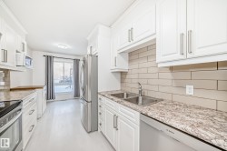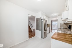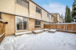Renovated end unit with many improvements! 3 Bedrooms, 1.5 Bath. Already done: new roof ( 2024) windows done (2021), new dishwasher (2024), new HWT (2023), new recessed lighting, newer paint and flooring throughout! New garage door opener with WIFI! (2024). Nice vibe and layout for this well-located townhome in desirable St. Albert! First-time home owners will love the affordability of this almost 1300 square foot home with an attached single garage. Blank canvas in the basement, customizable for your needs. Enjoy a lovely, sunny and south-facing fenced backyard with raised garden beds & patio. Pets possible with board approval. Put down roots here, welcome home! ( some photos virtually staged)