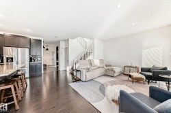 Welcome to this stunning RedBuilt Home proudly cared for by its original owners. Perfectly located in this friendly St. Albert community with easy access to the Henday, this home combines warmth, space & elegance. The main floor features beautiful hardwood, vaulted ceilings & a bright living room with large windows & a cozy gas fireplace. A chef’s kitchen offers granite countertops, a huge island, corner pantry, newer stainless steel appliances & abundant cabinetry, ideal for family gatherings. A spacious mudroom with laundry leads to the double attached garage. The front room den & powder room complete this level. Upstairs, enjoy a large bonus/family room for movie nights, a serene primary suite with its walk-in closet & 4-pc ensuite, 3 additional bedrooms & a full bath. The spacious basement is yours to do as you wish & the fenced backyard (with its numerous berry bushes) is perfect for relaxing or entertaining. Light, airy, beautifully maintained, with central A/C, AND solar panels, it’s a must see!