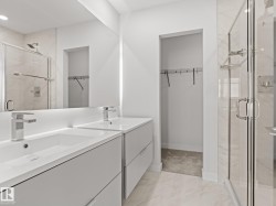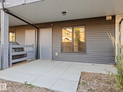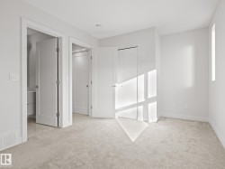 Welcome to this nearly NEW townhome in the beautiful Jensen Lakes community of St. Albert! Enjoy MAINTENANCE-FREE living just steps from the BEACH, parks, trails, dining, and theatre. This STYLISH home offers an open-concept layout with 2 bedrooms and 2.5 modern bathrooms. NATURAL LIGHT pours in through large windows, creating a warm, welcoming space for entertaining or relaxing. The SLEEK kitchen features white cabinetry, quartz countertops with a breakfast bar, and stainless-steel appliances. It flows seamlessly into the SPACIOUS living and dining areas and opens to a CHARMING upper deck. Upstairs, you'll find 2 PRIMARY SUITES—each with its own ensuite and closet—plus a convenient laundry area. The ground level includes a MASSIVE tandem garage, utility space, and access to a fenced yard and green space. Whether you're starting out or downsizing, this home is move-in ready, low maintenance, and ideally located—it truly rates a perfect 10/10!