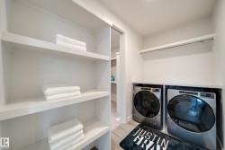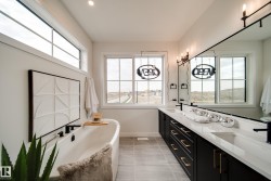 Welcome to The Vantablack by AWARD WINNING builder Justin Gray Homes, set on a 30’ pocket cul-de-sac lot in Cherot. An UPGRADED masterpiece w/over 2500 sqft blends luxury & functionality in a Modern Farmhouse colour palette by CM Interiors, showcasing sleek black cabinetry & timeless Carrera QUARTZ counters. An open to below great rm fills the home w/natural light, complemented by 9’ ceilings, 8’ doors, HARDWOOD floors, & a cozy GAS fireplace. An oversized dbl garage leads to a mudrm w/custom MDF built-ins, connecting to a walkthru pantry w/JG's signature archways,to a chef inspired kitchen w/huge island, premium DOVETAIL cabinetry, & a full KitchenAid APPLIANCE PACKAGE INCLUDED. A bright den & 1/2 bath complete the main. Upstairs find 3 spacious bdrms, incl. a dreamy primary retreat w/VAULTED ceilings, panelled feat. wall, spa-inspired 5 pc ensuite & massive WIC w/DIRECT access to the laundry rm. Steps to parks, near future schools and rec center. *Photos of similar model-final layout/finishes may vary.