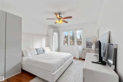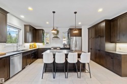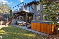 BACKING ONTO A TREED RAVINE & SIDING ONTO A PARK! Welcome to this stunning walkout bungalow in the sought-after community of Grandin, St. Albert. Perfectly situated, this home offers both tranquility & convenience with an additional park across the street. Featuring 4 spacious bedrooms & 2 full baths, including a 3pc primary ensuite with a walk-in closet, this home blends comfort & elegance. Inside, you’ll love the white walls, black doors & stunning hardwood floors that create a timeless modern look. The large kitchen, living room & dining area feature dark kitchen cabinets, massive windows, tile floors, a gas range, SS appliances, and an eating island, offering both style & functionality. The walkout lower level includes a generous recreation room, large laundry room & ample storage space. Complete with a double attached garage & an aggregate driveway, this luxury bungalow combines exceptional craftsmanship, thoughtful design & an unbeatable location with serene park views. All this home needs is YOU!