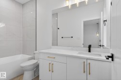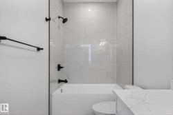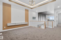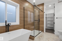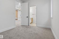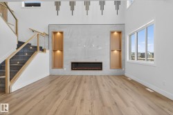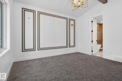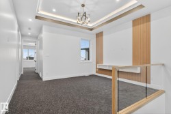 Fully upgraded brand new home that backs on to a walking trail right beside the pond. This 2300+sqft home features a main floor bed/den with window, closet and full bath. Mudroom will have a built-out bench with hooks which leads to a massive extended kitchen with built in appliances, double door fridge/freezer and huge island. Main floor is finished with an open to above living room with a fireplace feature wall. On the 2nd floor you have a bonus room with indented ceiling, a spacious primary bedroom with vaulted ceilings and a stunning 5-piece bathroom and walk-in closet. The 2nd bedroom also features a walk-in closet with it's own private en-suite. The 2nd level is finished with another full bedroom with walk-in closet and additional full bath, and laundry room with a sink. Tons of upgrades throughout like 8ft doors, feature walls, indent ceilings, strip lights, glass railing, etc.